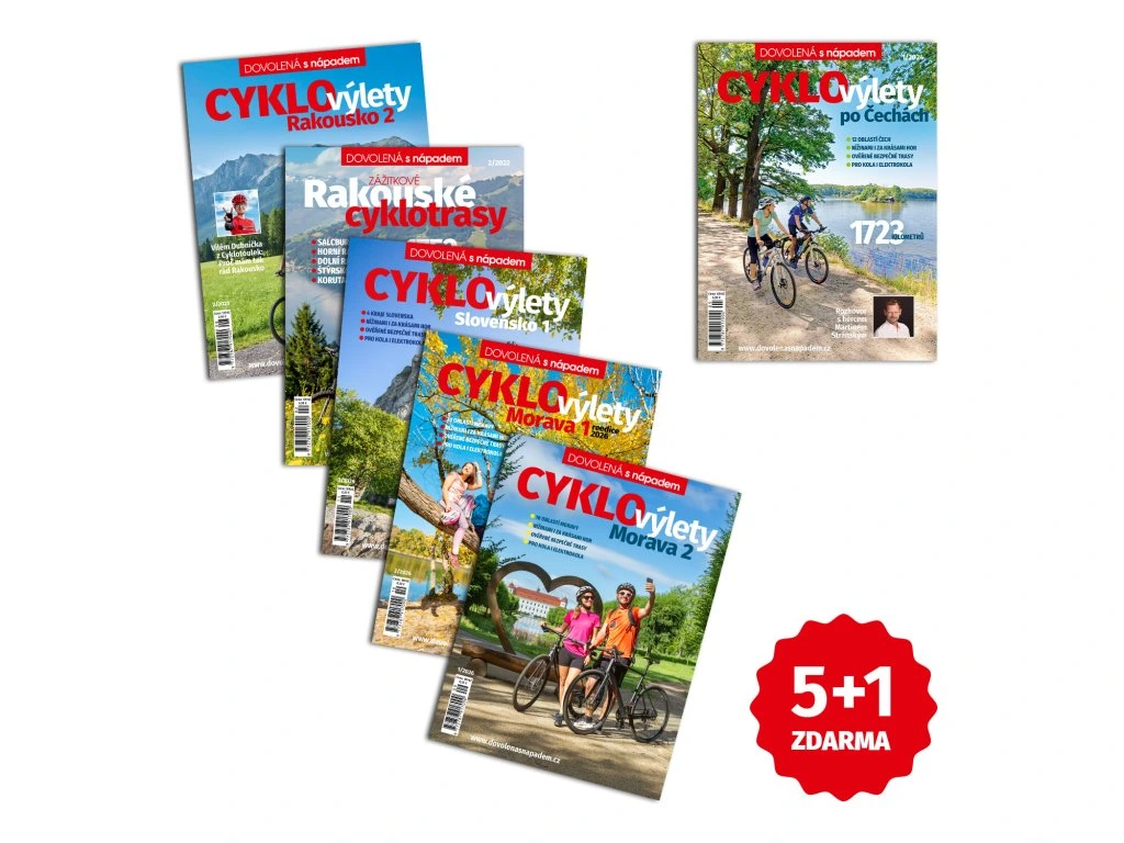 Sada 6 originálních cyklistických magazínů, ve kterých najdete bezpočet ověřených a bezpečných tras z oblíbených cyklistických destinací v Čechách, na Moravě, na Slovensku a v Rakousku.