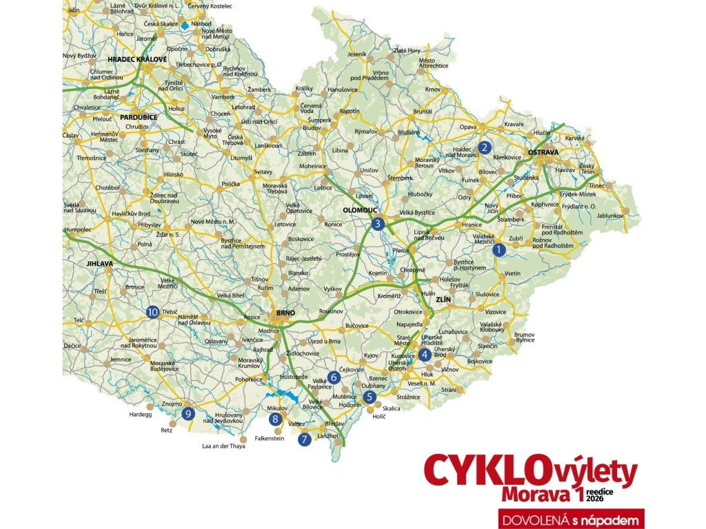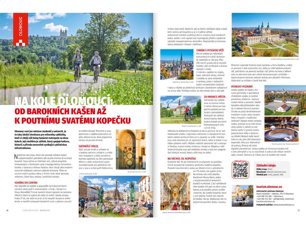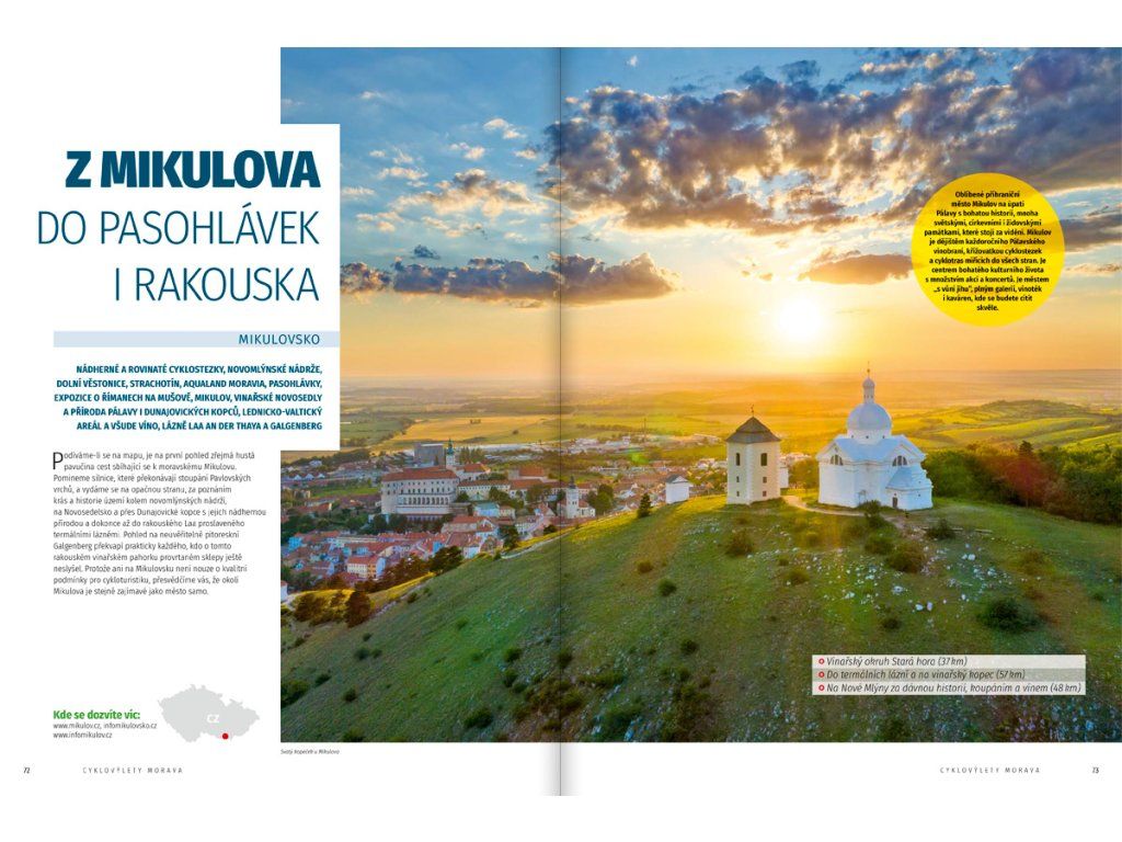 Magazín CYKLOvýlety na 100 stránkách přináší 33 ověřených a bezpečných tras z 11 oblíbených turistických destinací Moravy. Výlety jsou naplánovány tak, aby si vybrali všichni, co se rozhodli vyrazit na dovolenou v sedle kola nebo čím dál tím víc oblíbenějšího elektrokola.